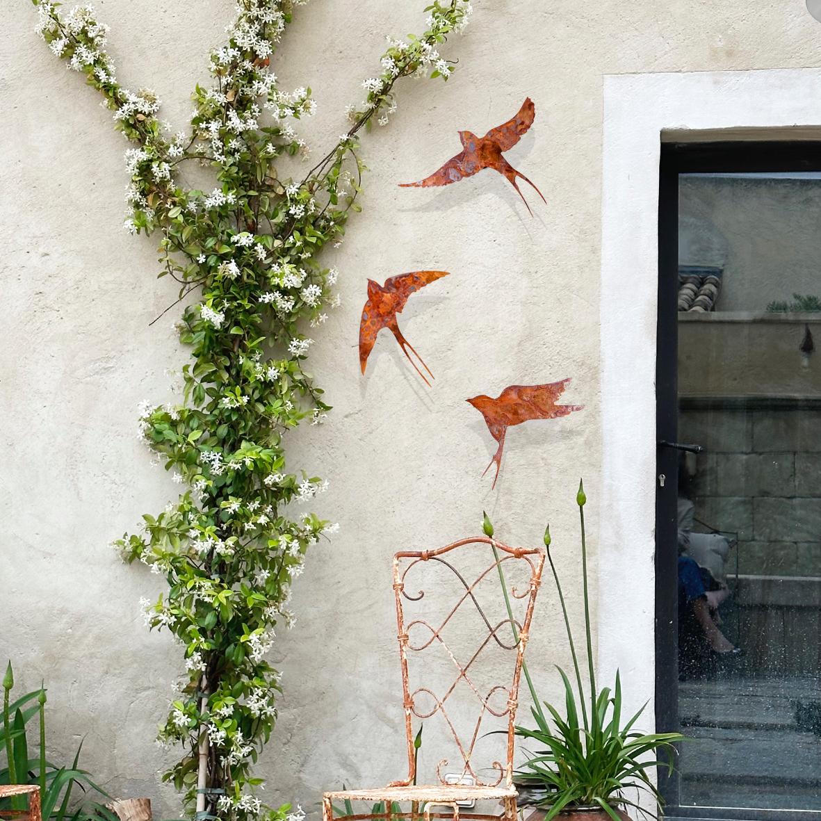 A Escultura Andorinhas (Trio) traduz liberdade, poesia e movimento em uma composição de parede elegante e atemporal. Produzida em ferro envelhecido, cada andorinha apresenta nuances e texturas singulares — resultado natural do processo de pátina — tornando o conjunto autenticamente único. Em conjunto, as três peças criam um “voo” dinâmico que transforma a parede em cena viva, dialogando com estilos rústicos, contemporâneos e afetivos.