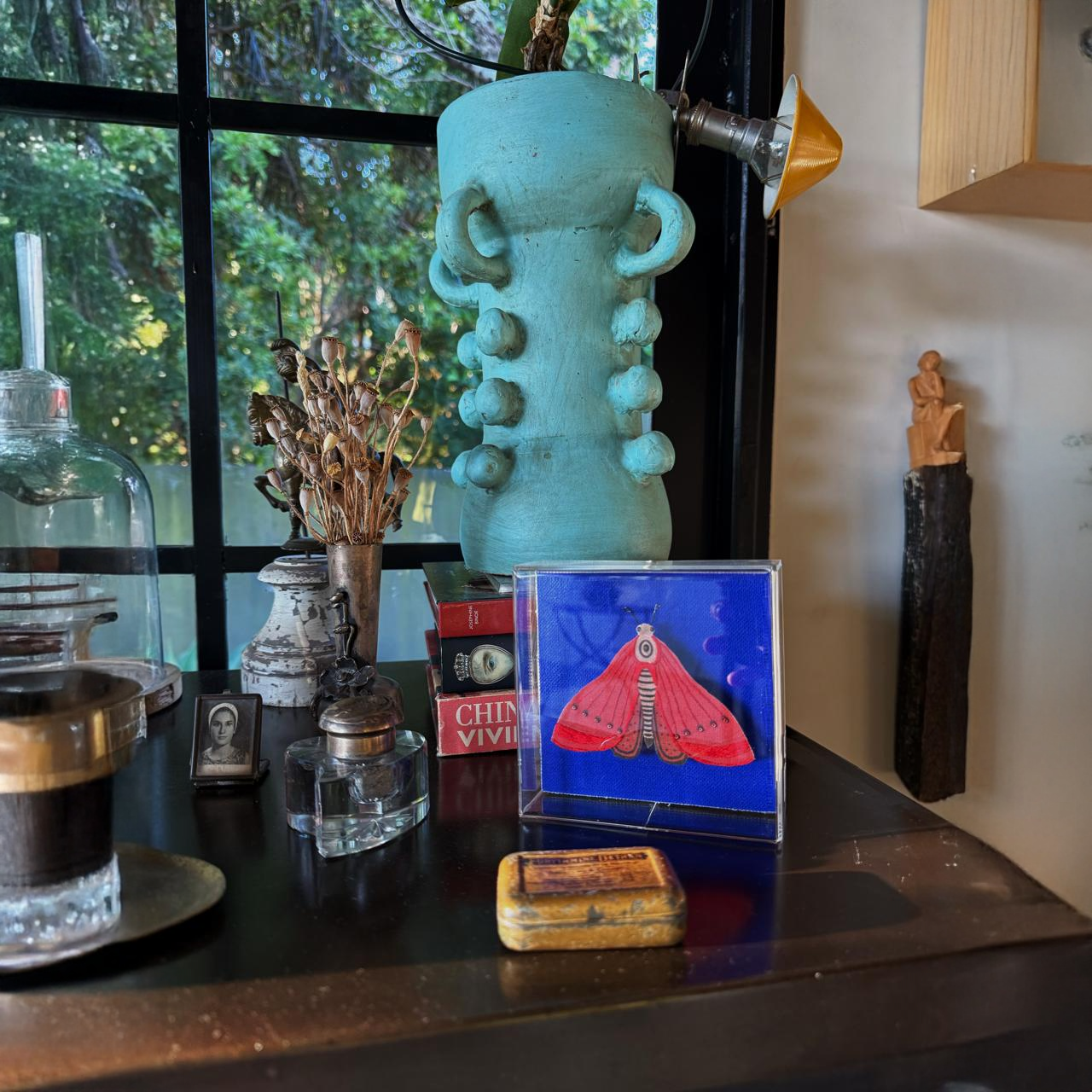 O quadro é montado em uma moldura de pinus natural com proteção frontal em acrílico, garantindo durabilidade e um acabamento sofisticado que se integra harmoniosamente a qualquer decoração. Compacto e cheio de expressão, é perfeito para criar pontos focais em pequenos espaços ou para compor uma galeria de arte natural.