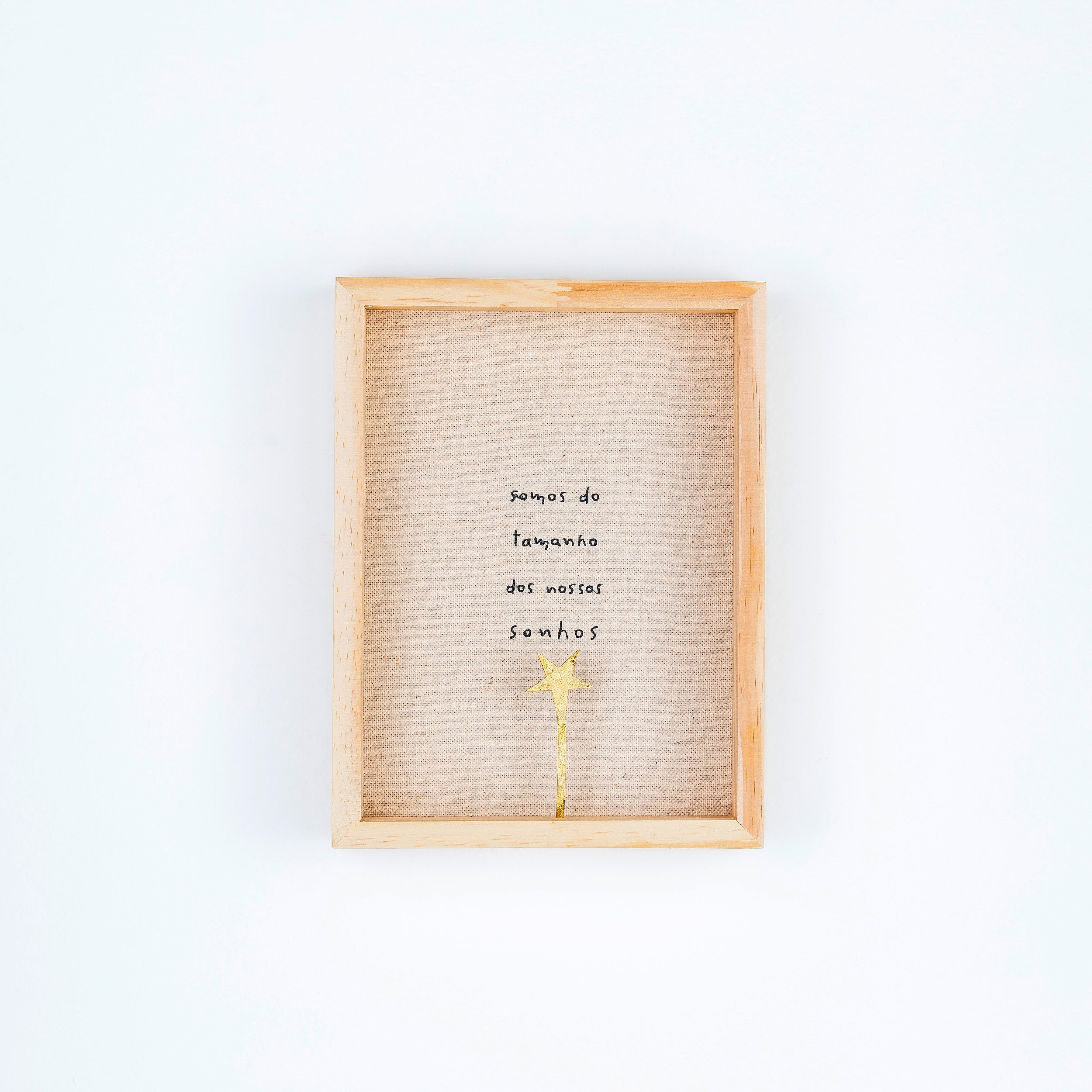 O Quadro Caixa Bordado com Acrílico – Somos do tamanho dos nossos sonhos nasce como um lembrete silencioso de que aquilo que imaginamos também nos constrói.